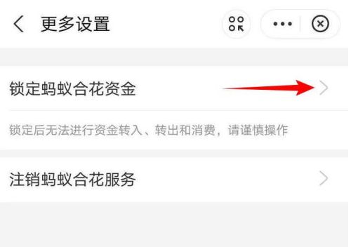 5、在更多设置页面,点选锁定蚂蚁合花资金;