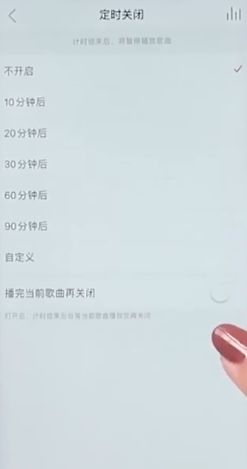 2可选择不开启,10分钟后,90分钟后,自定义,也可以选择播放当前歌曲再关闭。
