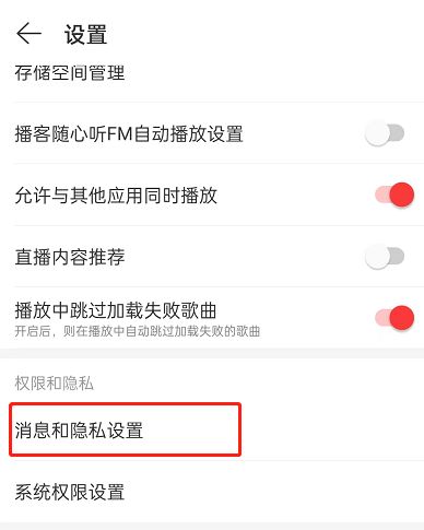 3、点击消息和隐私设置。
