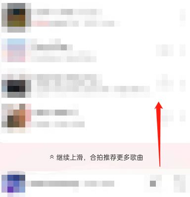 3、查看到“继续上滑,合拍推荐更多歌曲”,接着上滑。