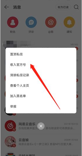 网易云音乐怎么将消息收入官方号 网易云音乐将消息收入官方号方法【详解】