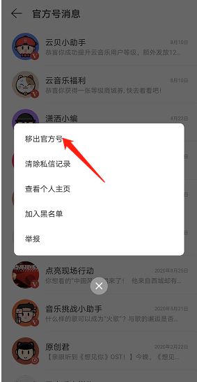 网易云音乐怎么移除官方号