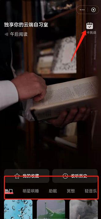 2、选择下方的各种类型,你可以选择喜欢的白噪音,点击【 打卡 挑战】。