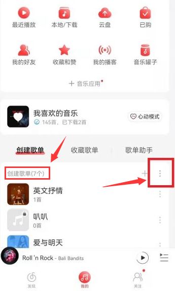 2.找到 创建歌单 列表 右侧 的 三点符号