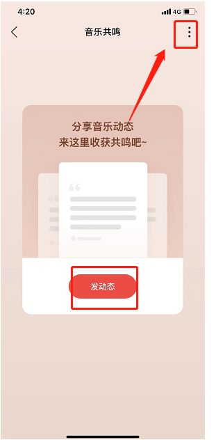 3、点击图中的【发动态】即可发表共鸣。选择右上角的设置可以设置分享范围。