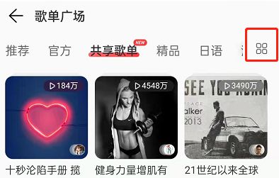 2、进入歌单广场,点击右侧四叶草图标。