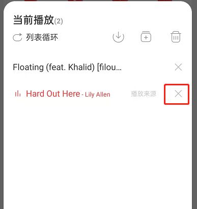 3、可以看到播放序列,点击下首歌曲旁边的x键即可取消播放。