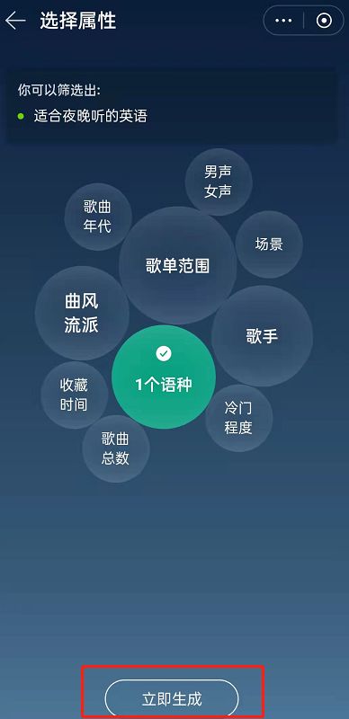 4、选择一些您需要筛选出的属性,点击立即生成。
