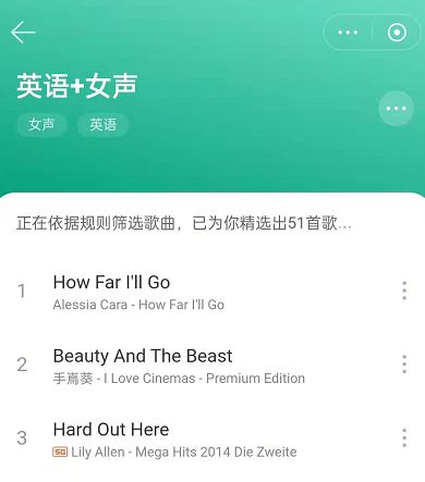 5、我们就可以发现歌单助手为您带来了符合您要求属性的歌曲,并为您生成了歌单。