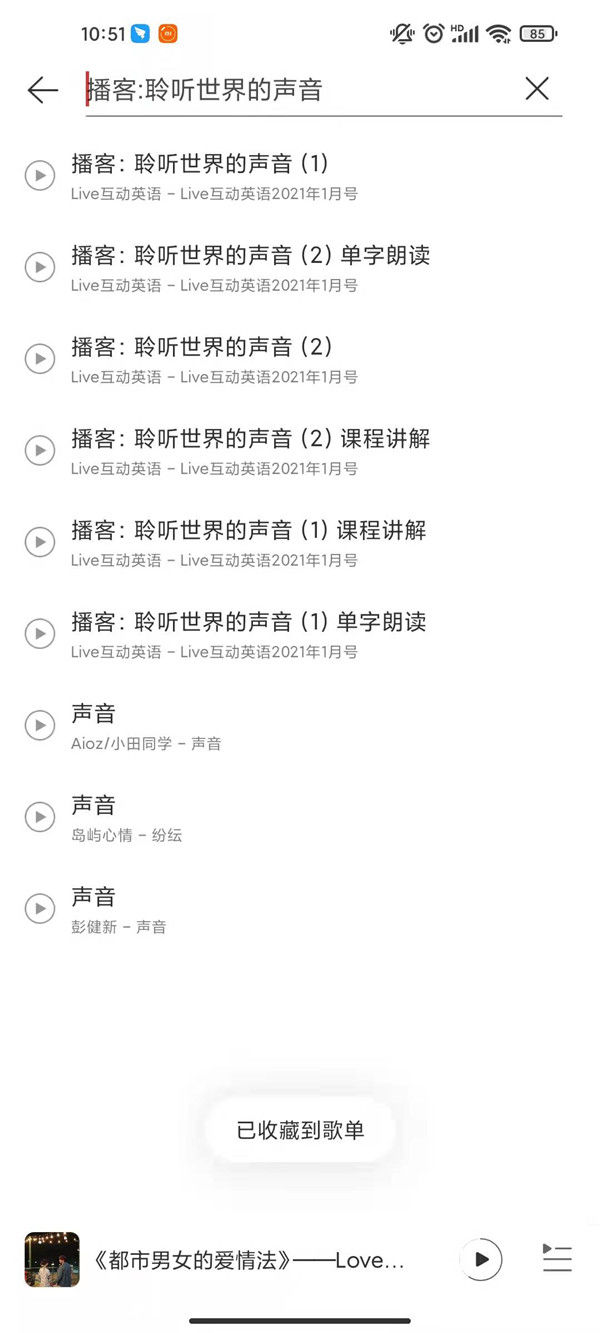 3、选择添加歌曲,然后 搜索 声音,点击一下即可添加至歌单。
