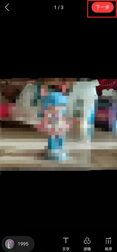 3、导入图片素材,进行编辑后,点击右上方下一步。
