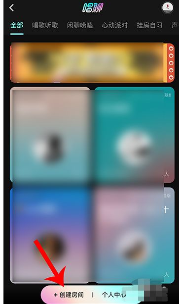 4、选择唱聊房间分类,再选择随机话题,点击创建。