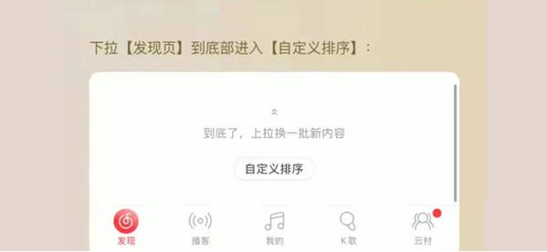 3、下拉首页到最底部,你还可以自定义排序调整【Hi、音乐合伙人】模块的位置。