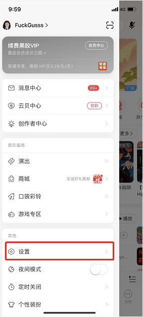 1、打开网易云音乐app,在首页中按住屏幕并向右滑动。