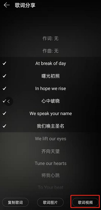 2、选择需要制作的歌词片段,点击右下方歌词视频即可。