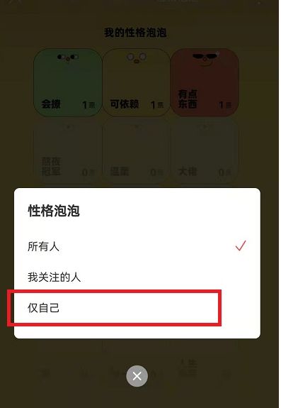 网易云音乐性格泡泡还会有好友为自己进行投票,因此很多用户想要关闭,但这个虽然无法直接关闭,不过用户们可以按照下方设置成仅自己可见就可以了: