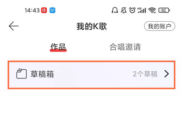 2、在我的K歌中点击草稿箱即可查看自己唱的歌曲。