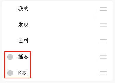 第四步:点击“-”,可自由选择。“我的、发现、云村”是基础导航,不可取消哦。