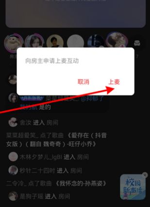 3、在弹窗上再次点击上麦,房主同意即可上麦k歌。