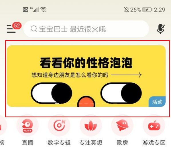 方法二:打开网易云音乐首页,就可以看到这个性格泡泡的活动啦,直接点击即可。