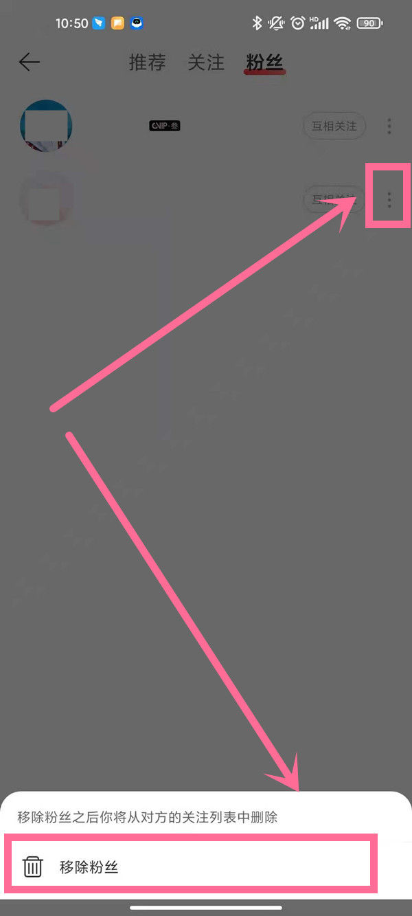 3、找到想要移除的粉丝,点击右侧的三点图标,点击移除粉丝即可。