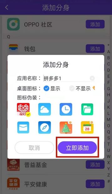 2、点击添加拼多多分身。