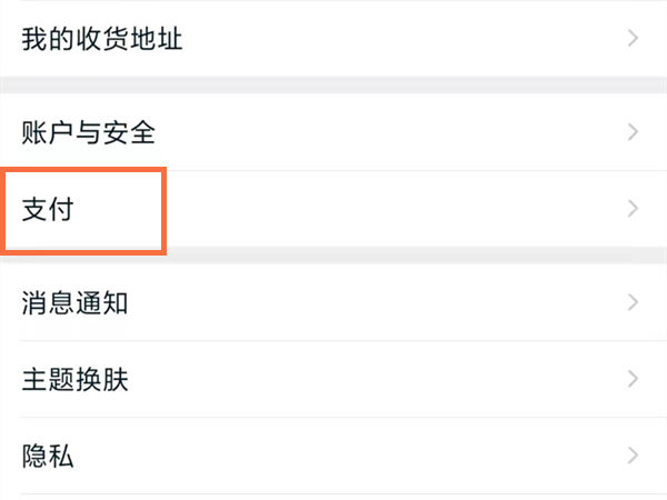 2、在设置页面点击支付。