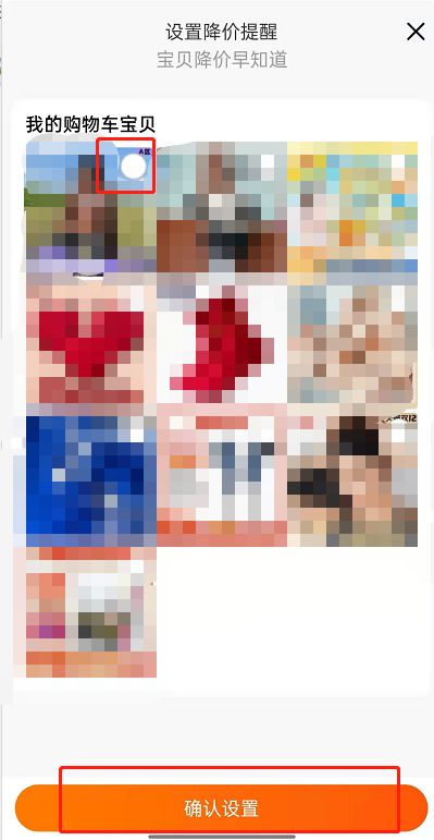 4、勾选想设置降价提醒的购物车宝贝,点击确认设置即可。