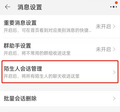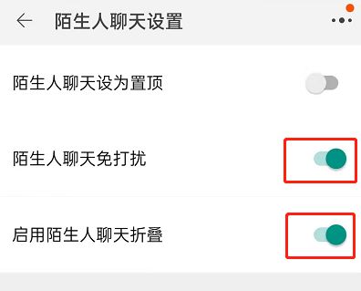 4、将陌生人聊天免打扰、启用陌生人聊天折叠功能开启即可。