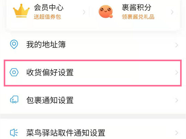 2、找到右下角的收货偏好设置。