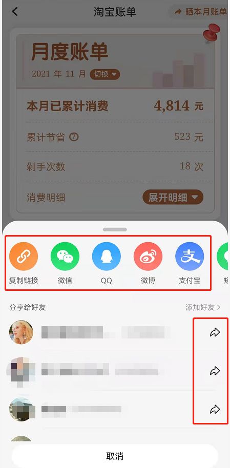 淘宝月度账单怎么分享给好友 淘宝月度账单分享给好友方法【步骤】