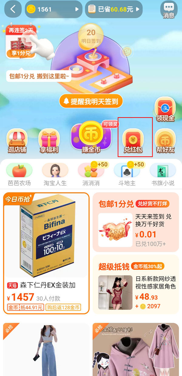 淘宝淘金币怎么兑换红包