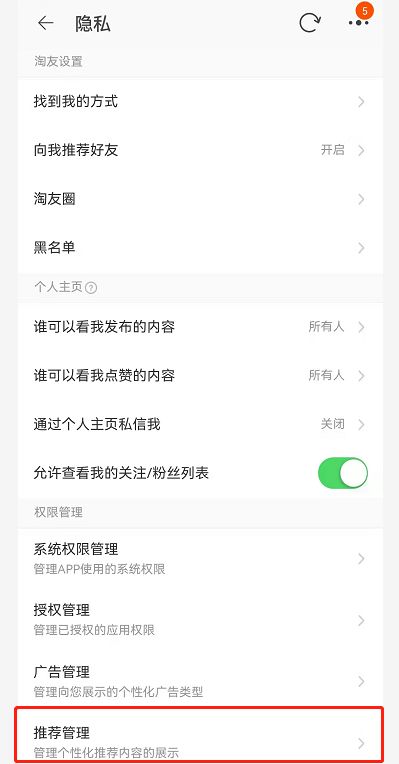 淘宝个性化推荐怎么取消