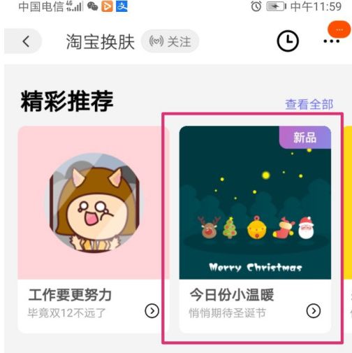 3、点击淘宝换肤,如下图,看到今日份小温暖皮肤