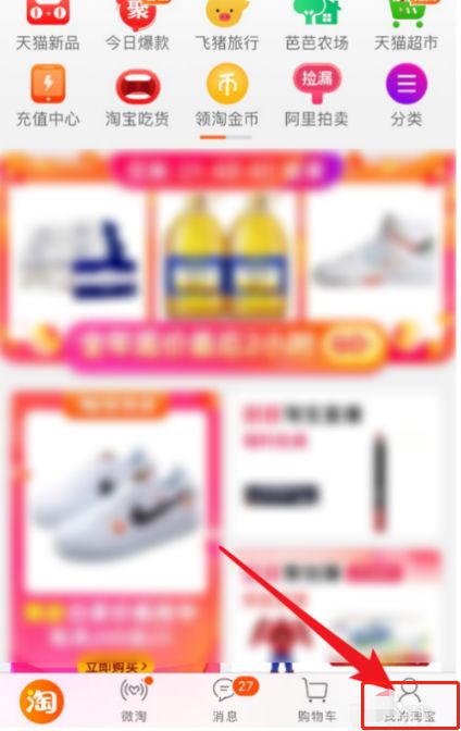 2、进入到手机淘宝页面后,点击右下角处的【我的淘宝】按钮