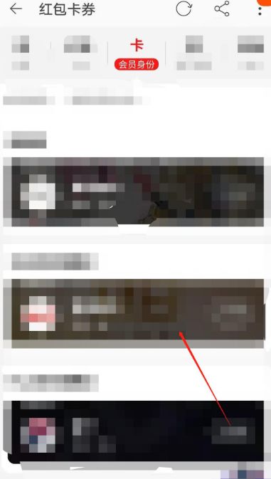 3、点击【卡】,在卡的页面找到自己想要取消的店铺会员点击。
