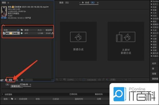 2、视频导入进来后,将其拖到下方【新建合成】的按钮上。