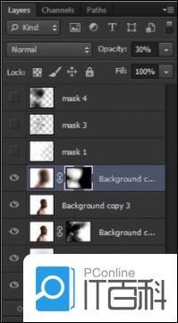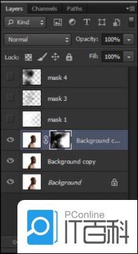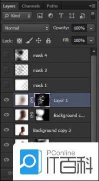 步骤7、 通过按两次 Control-J 复制背景层。转到上方的副本,按住 Control ,然后单击“遮罩 1 ”的缩略图以将其选中。使用 Control-Shift-I 反转选择,并添加一个 Layer Mask 。