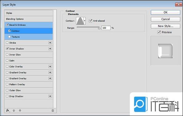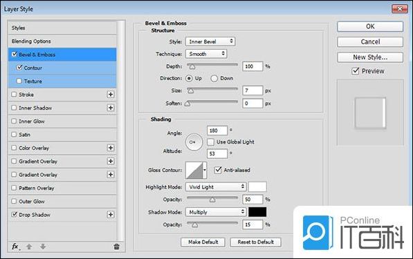 第1步、 使用以下设置添加斜面和浮雕: