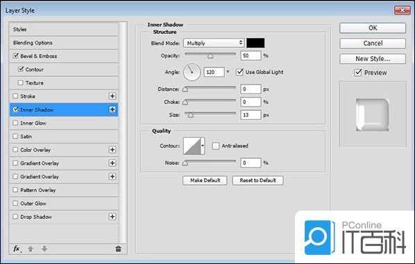 第3步、 使用以下设置添加内部阴影: