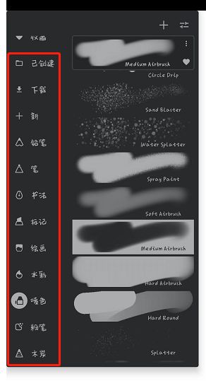 2.最好能够在集合组中加入一些我们常用的纹理笔刷。选择一个需要的画笔,点击后面的爱。