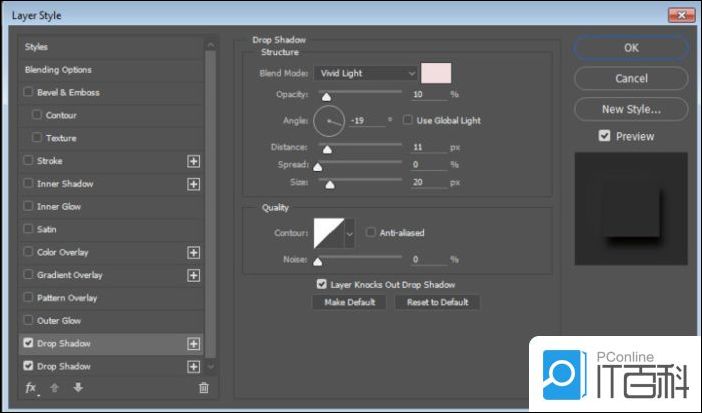 步骤4、 双击该小品层,并改变阴影效果的大小值回到 10 。