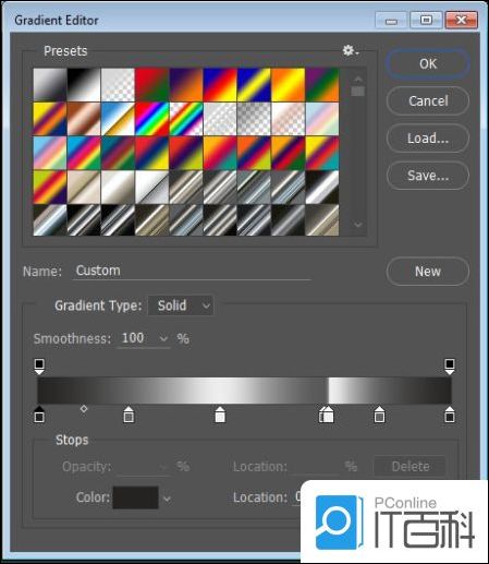 第6步、 要创建渐变,您需要单击渐变栏下方以添加色标,然后单击每个色标时,可以更改其色值和位置值。这是从左到右使用的色阶值: