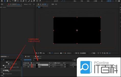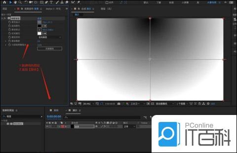 2在 操作 面板中点击 鼠标 右键添加【纯色图层】,在 颜色 面板中调整【黑色】点击确定,在 效果 器面板中搜索【梯度渐变】效果器,将类型调整为【径向渐变】在颜色面板中调整颜色点击确定。