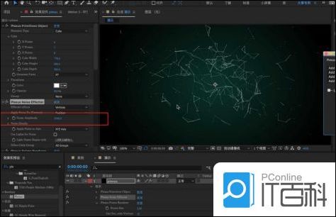 5.然后在面板中选择【Plexus Noise Effector】面板修改【Noise Amplitude】的数值为【1000】。