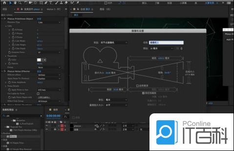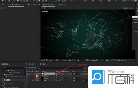 7.在项目面板中点击鼠标右键,一次点击【图层-新建-空对象】效果,选择“摄像机”图层,在【父级和链接】面板中链接到【空对象】图层中,方便后期的动画制作。