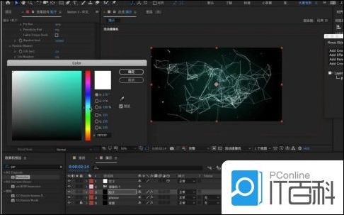 9.在操作面板中右键鼠标添加【纯色图层】,在颜色面板中调整【黑色】点击确定,然后在效果器中添加【Particular】效果器。