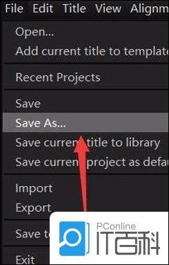 6、需要添加的字幕制作完成之后,要另存为,需要选择上方的save as选项。