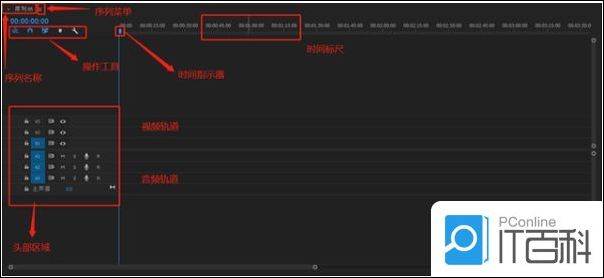 它们由最基本的部分组成,大致分为:序列名称、序列菜单、时间码、时标、时间指示器、基本操作工具、音视频轨道、轨道头区等。