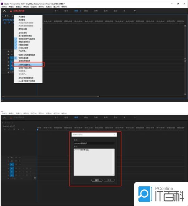 如果需要为已建立的序列创建预置,可以点击序列标签,从序列中选择创建预置,弹出保存序列预置的窗口。您可以重命名要保存的预设并更改注释。创建后可以通过自定义预置直接打开。
